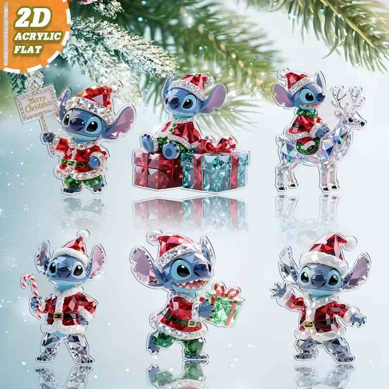Украшения на елку Стич Новогодний 6шт, пак. 15*15см