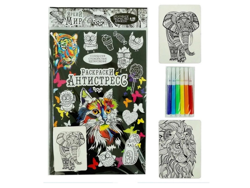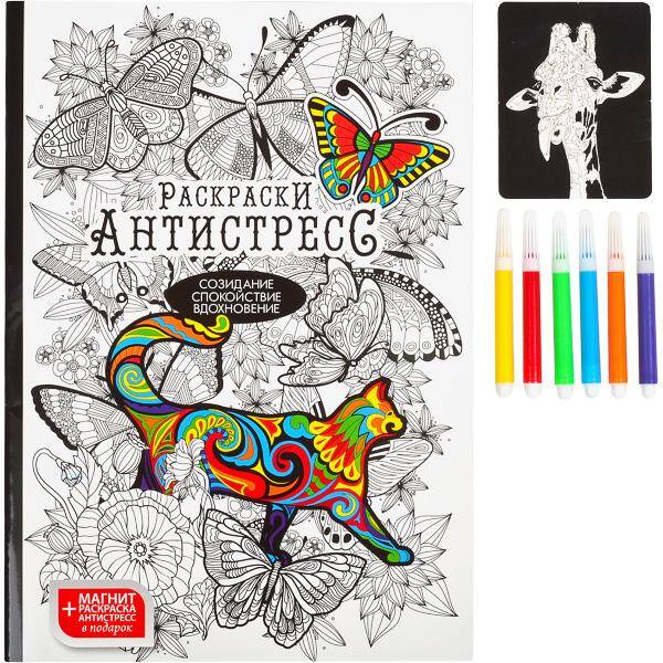 Раскраска Антистресс, с фломастерами, пак. 35*21см (40шт)