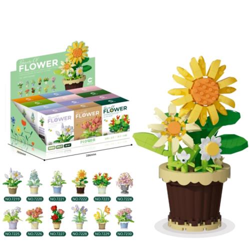 Конструктор цветы в горшке, от 105дет, 12 видов, в дисплее, 28,5*12,5*19,5см (144шт)