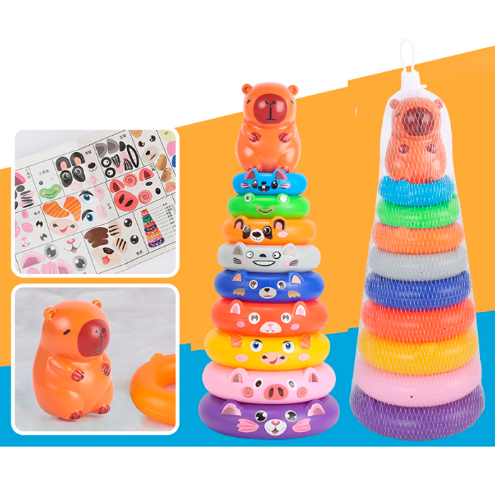 Пирамидка 31см, Капибара, кольца 8шт (с ушками), наклейки, в сетке, 36*13*13см (50шт)