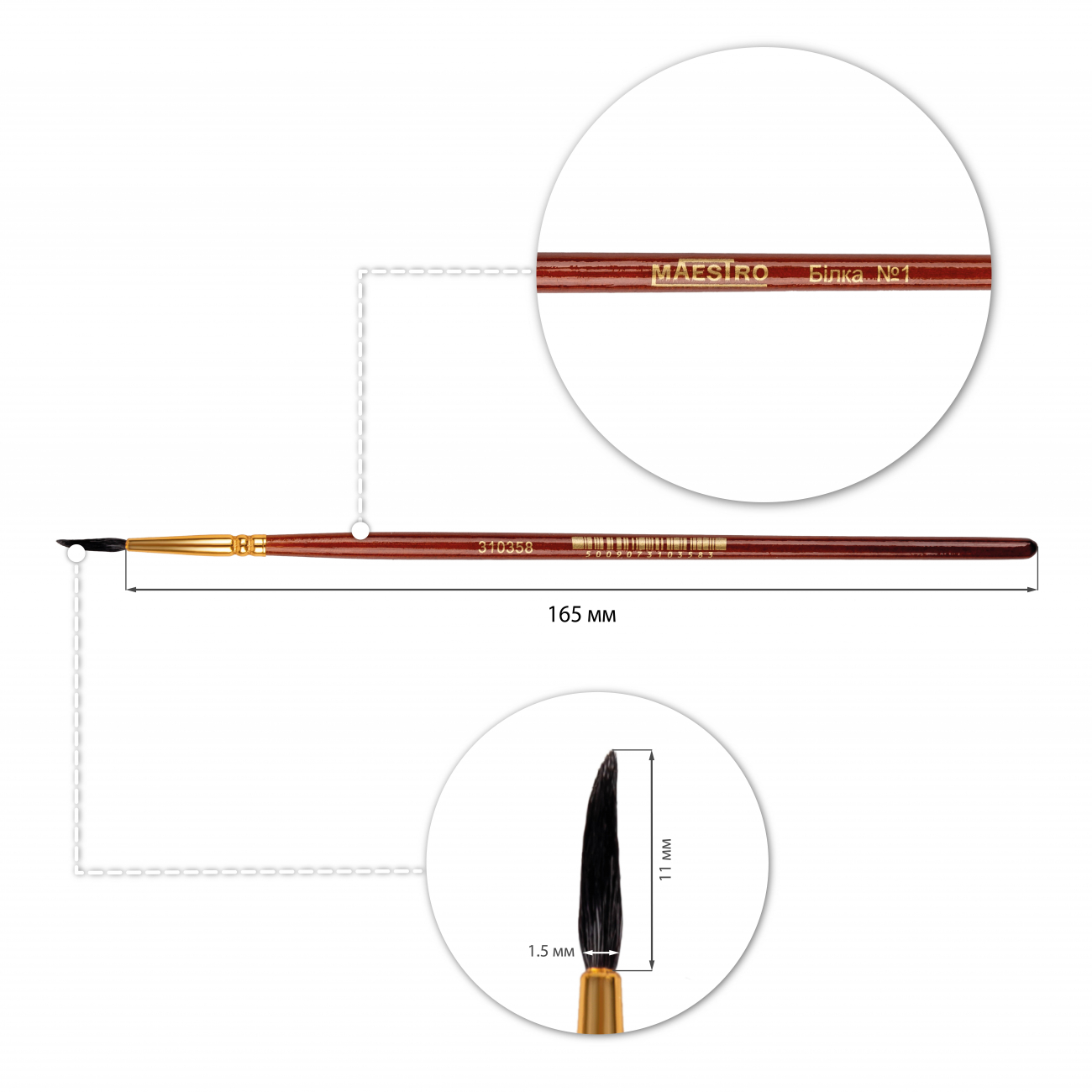 Кисть художественная "Maestro" белка, круглая №1, 18см, ТМ 1 Вересня, Украина