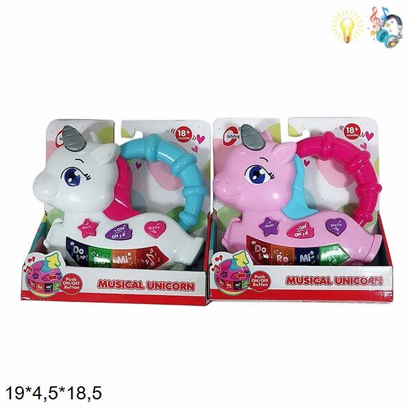 Пианино 15см, единорог, музыка, звук, свет, 2 режима, 4 вида, на батар., в кор. 19*14*4см (60шт)