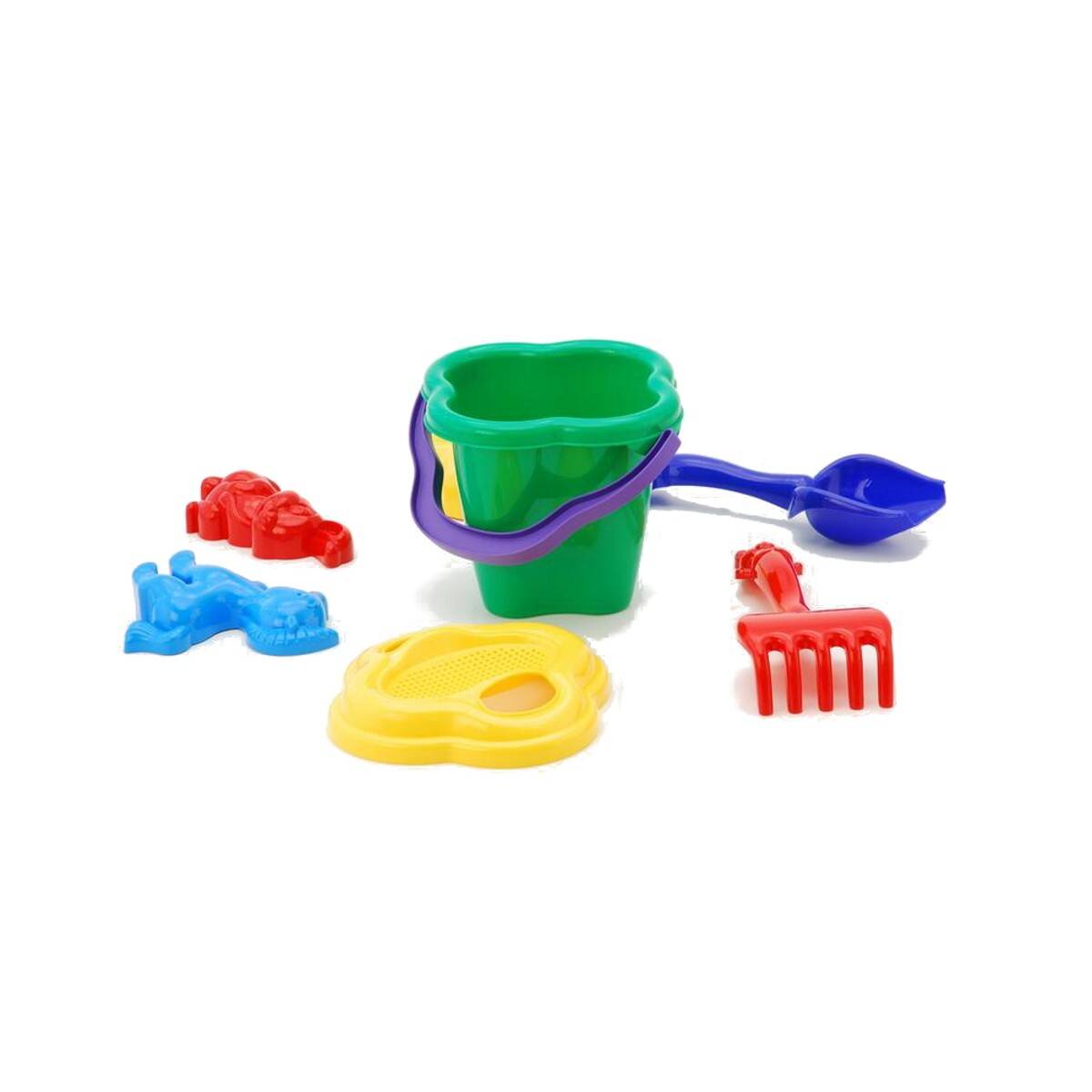 Песочный набор "Ромашка" №1 ведерко, сито, лоп, грабли, 3 паски, сетка 14*10см, , ТМ Колорпласт, Украина (24шт)