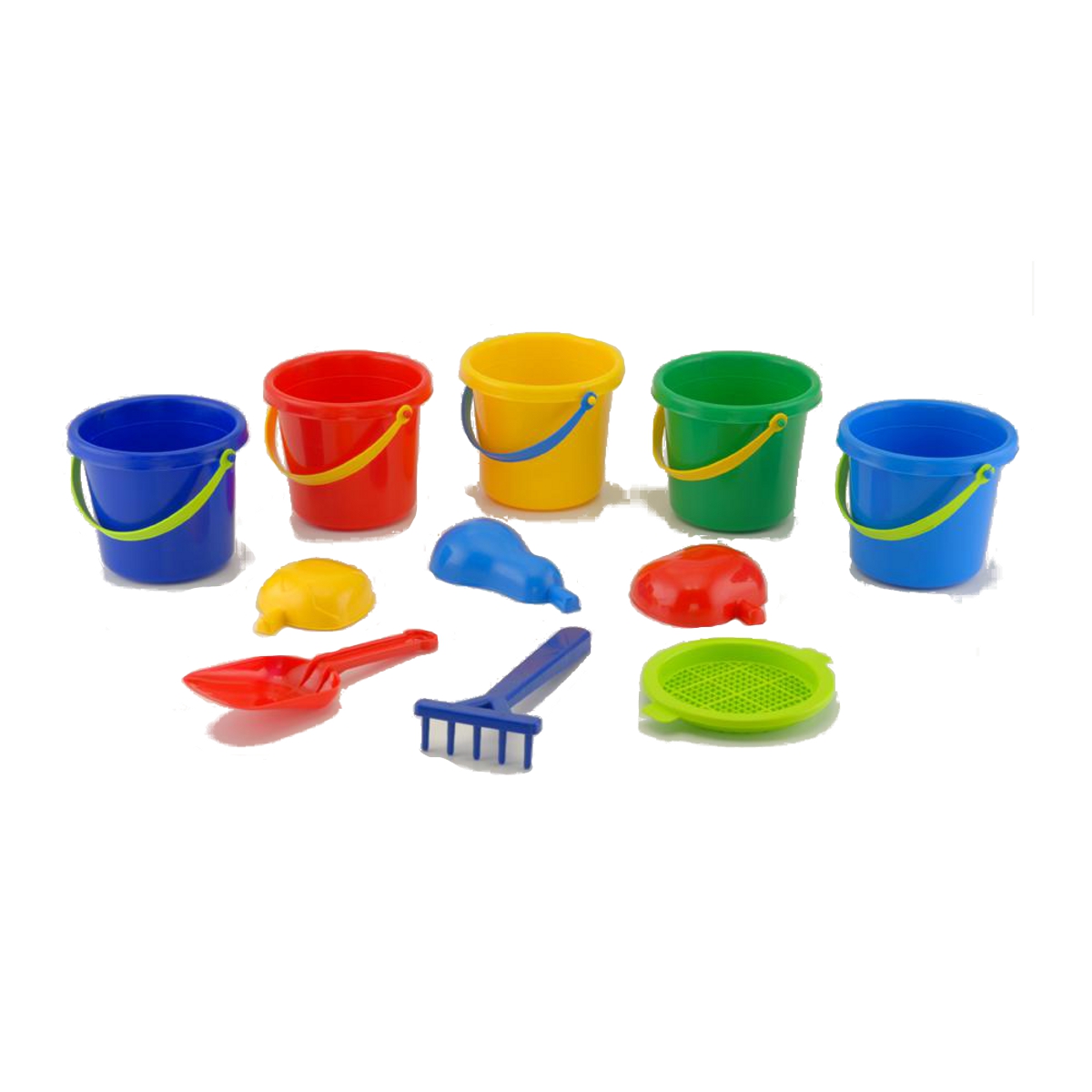 Песочный набор "Колокольчик №2 ведерко, сито, лоп, и граб, 4 пасочки , сетка 12*10см, ТМ Колорпласт, Украина (12шт)