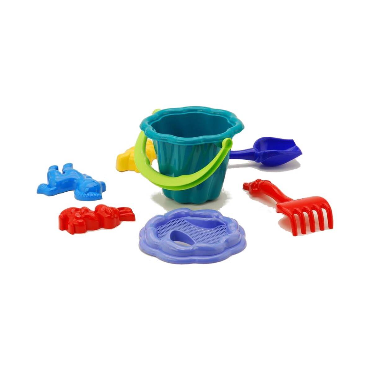 Песочный набор "Кувшинка" №1 ведерко, лоп., и граб., 3 пасочки, сетка 10*7см, ТМ Колорпласт, Украина (30шт)