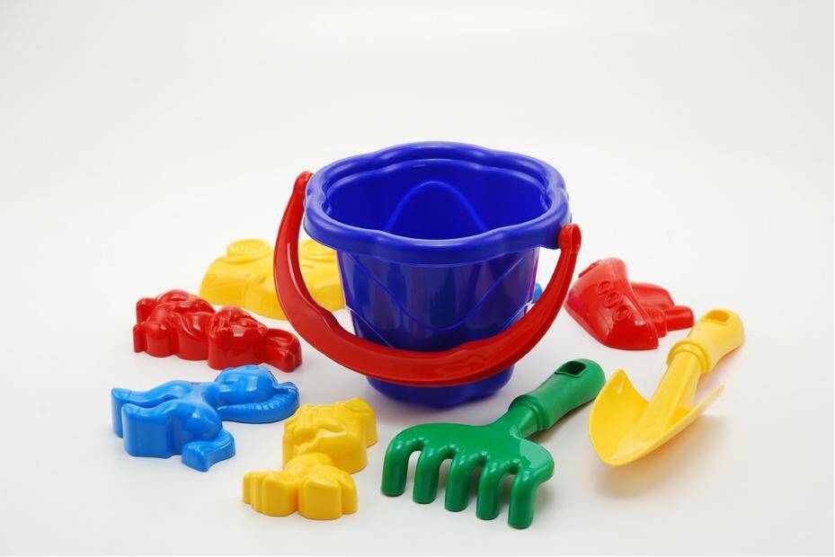 Песочный набор "Незабудка" №3: ведерко, лопата, грабли, 6 пасочек, 6 цв., сетка 24,5*18,5*16,5см, Украина, ТМ Колорпласт (24шт)