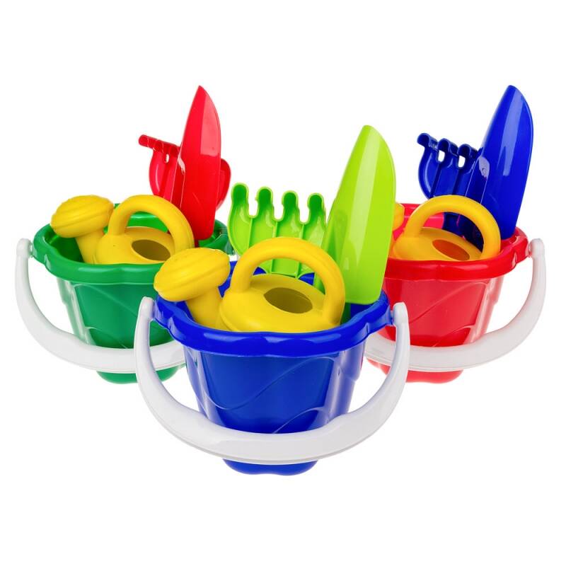 Песочный набор "Незабудка" №1 (ведрко, лейка, лопата и грабли), сетка 25*15см, Украина, ТМ Колорпласт