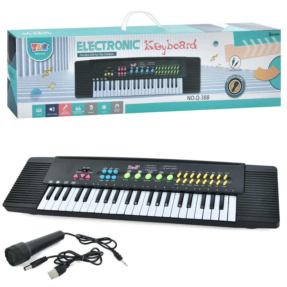 Синтезатор 61см, 44клавіши, мікрофон, запис, демо, регулятор гучності, USB шнур, бат./від мережі, в кор. 61,5*16,5*6см (18шт)