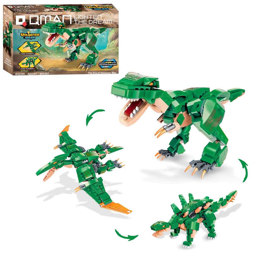 Конструктор Qman 3в1, динозавр, 287дет, в кор. 31,5*19*5см (32шт)
