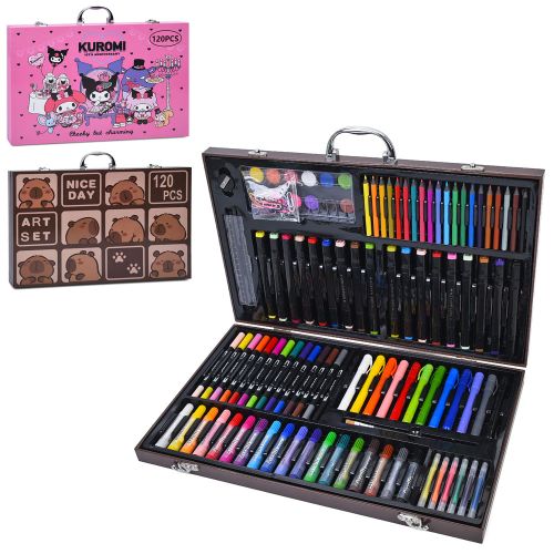 Набір для творчості, маркери двосторонні, фломастери, воскова крейда, акв.фарби, пензлики, олівці, лінійка, 120пр, 2 види (KR, капібара), в чемодані, 47*30,5*5см (12шт)