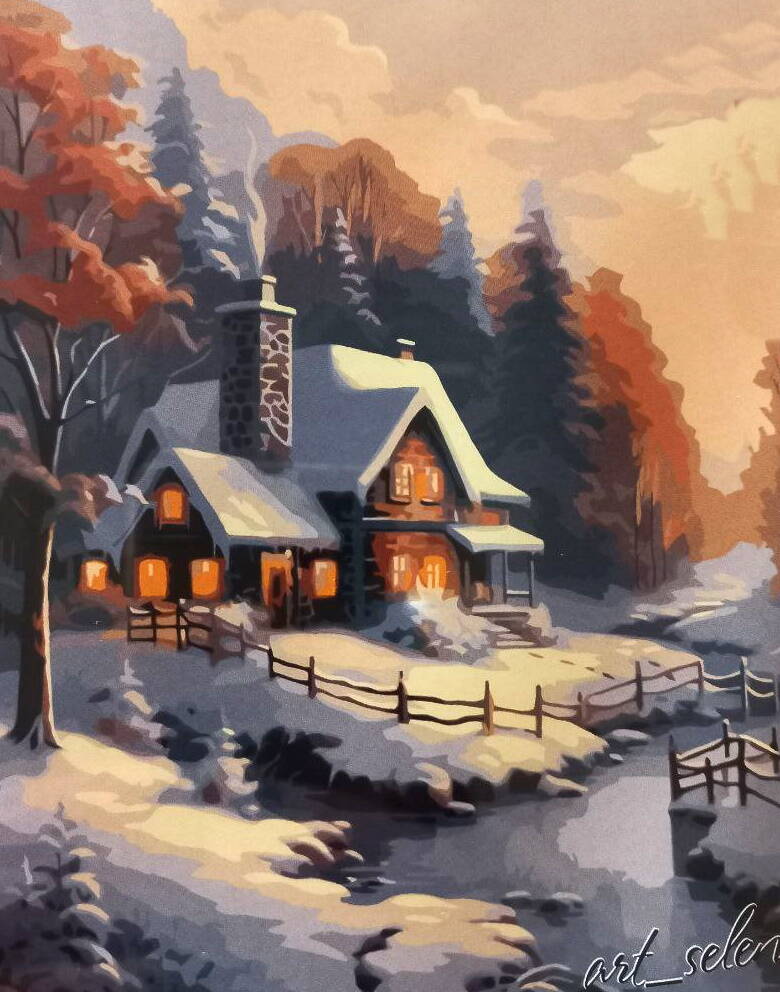 Картина за номерами "Зимовий будиночок" 40х50см, в термопакеті, ТМ Ідейка, Україна