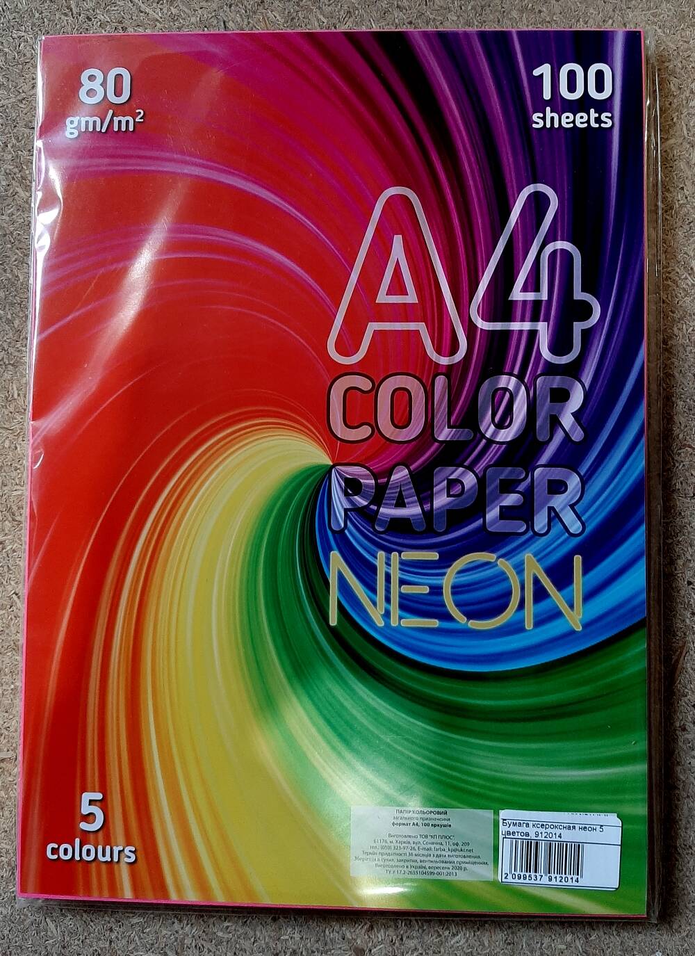 Папір ксероксний неон 5 кольорів, 100 листів, 30*20*1см, ТМ Колорит, Україна.