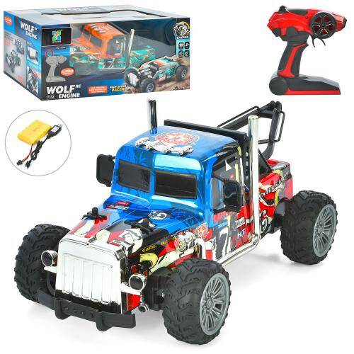 Джип 21см, р/к, 2,4G, акумулятор, USB зарядне, світло,корпус що не бьется, амортизатори, 1:18, гумові колеса, 2кольори, в кор. 27*20*17см (8шт)