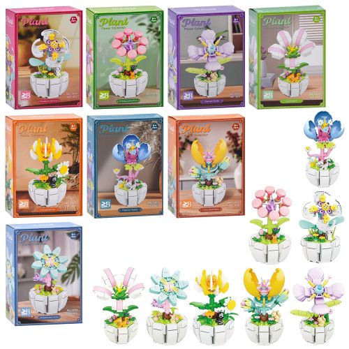 Конструктор квітка у горщику, від 142дет, 8 видів, в кор. 12*17*6см (96шт)