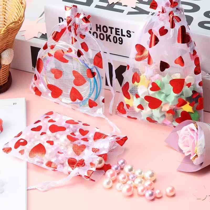 Мішечки 8*10см для подарунків з органзи. с серцями ЦІНА ЗА УП. 30ШТ, пак. 12*15см