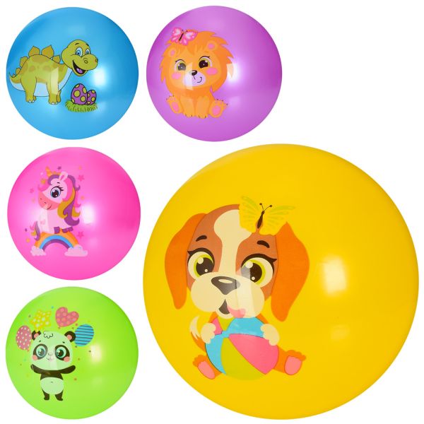 М'яч дитячий 9 дюймів, малюнок, 60г, ЦІНА ЗА УП. 12ШТ, 5 кольорів, 5 видів (тварини, динозавр) (120шт)