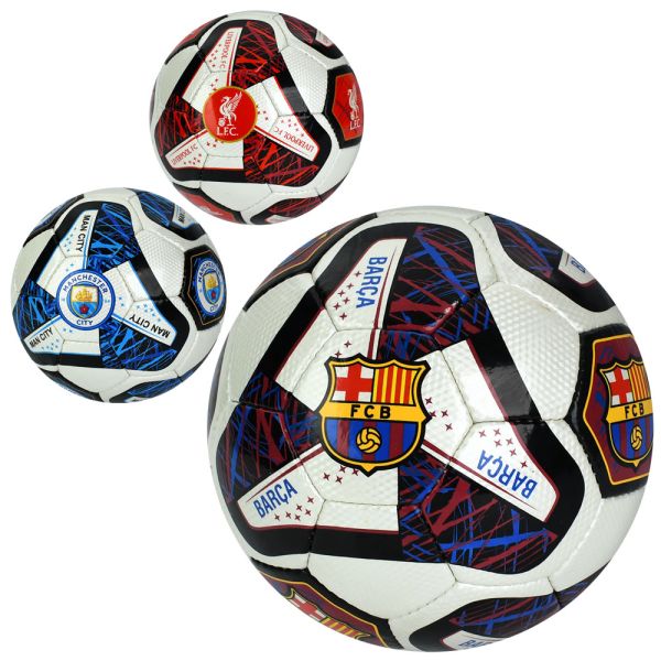 М'яч футбольний, розмір 5, ПУ1,4мм, 32 панелі, ручна робота, 420-400 г, 3 види(клуби), у пак. (30шт)