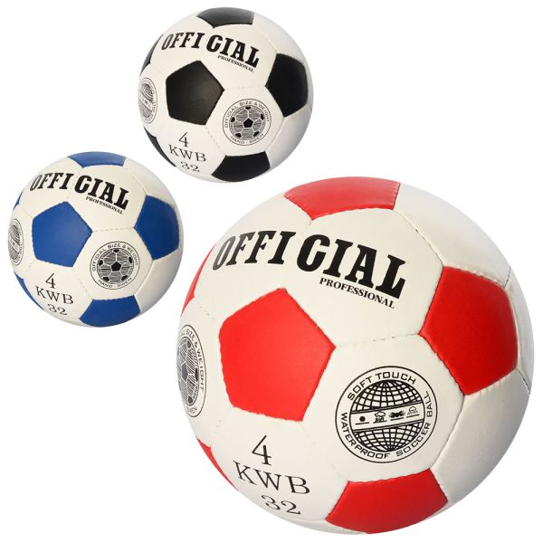 М'яч футбольний OFFICIAL 1,4мм, розмір 4, ПУ, 32 панелі, ручна робота, 390-400г, 3 кольори, в пак. (30шт)