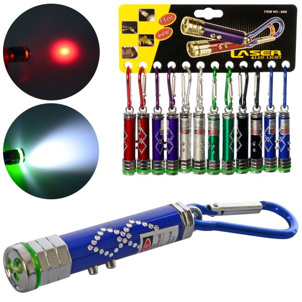 Ліхтарик 7см, брелок, світло, лазер, ЦІНА ЗА УП. 12ШТ, бат. табл., пак. 18*18*1см (240шт)