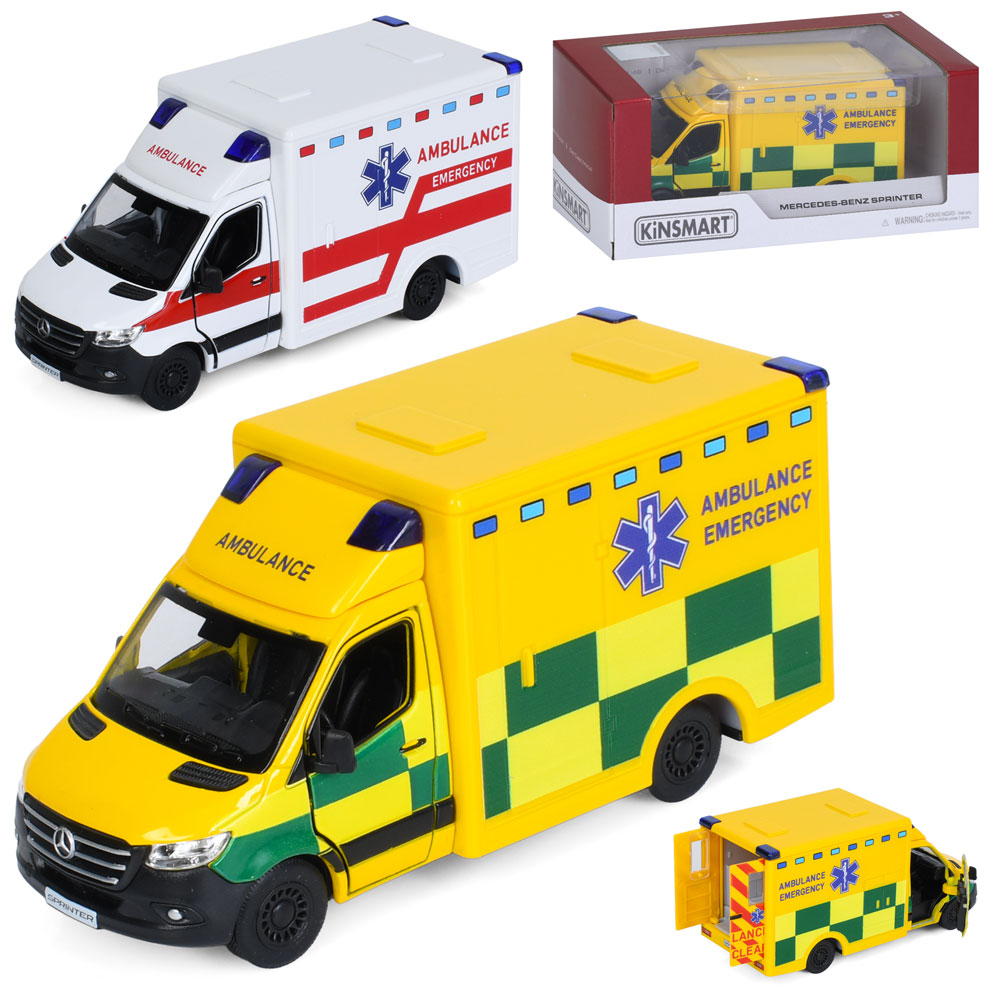 Транспорт спецслужб Kinsmart метал, інерція, 1:48, 12см, швидка допомога, відчиняються двері, гумові колеса, 2 види, в кор. 16*7*7,5см (24шт)