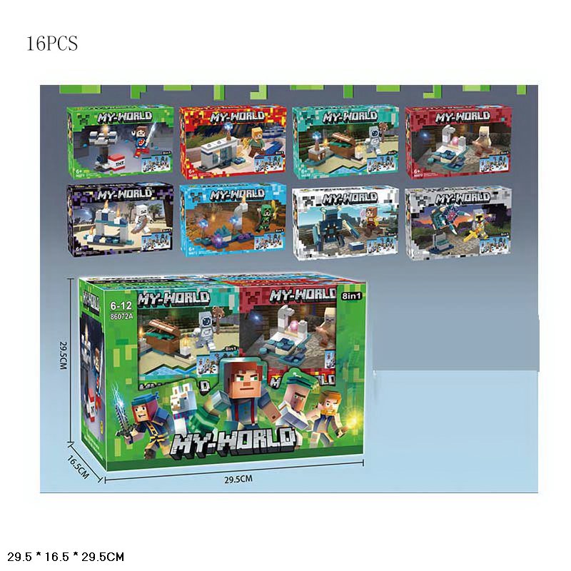 Конструктор Minecraft 8 видів, ЦІНА ЗА 1ШТ в кор.15*10*4см, В УП. 16ШТ, у дисплеї 29,5*16,5*29,5см (480шт/2)