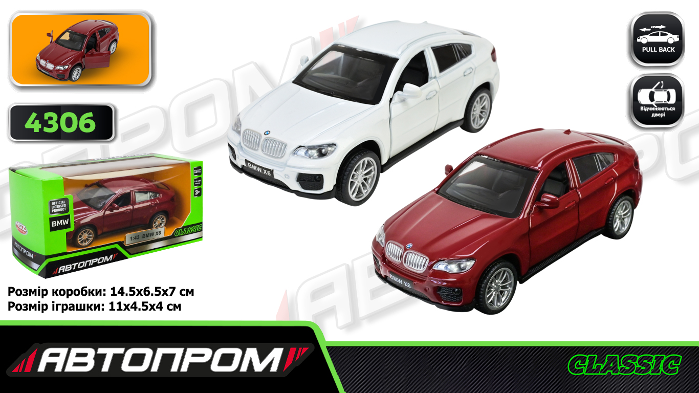 Машина метал. "АВТОПРОМ", 1:43 BMW X6, 3 кольори, відкр.двері, в кор. 14,5*6,5*7см (96шт/2)