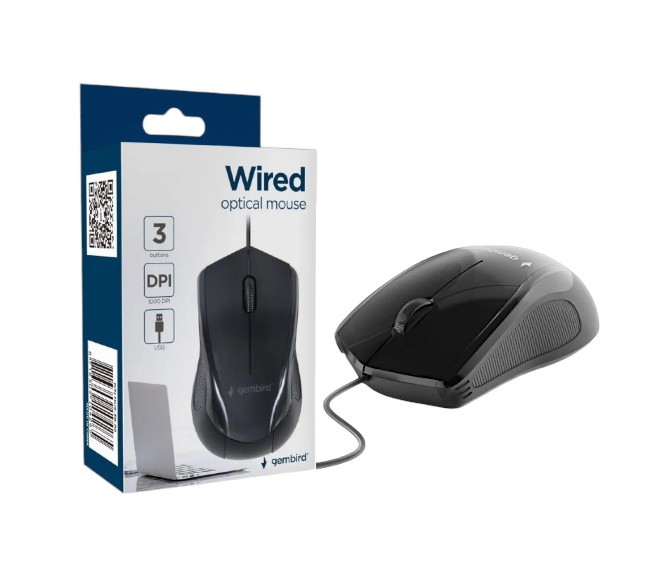 Миша Gembird MUS-3B-02, дротова, оптична USB, чорний, в кор. 9*12,5*4см (20)