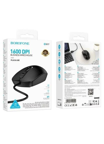 Миша Borofone BG17, дротова USB, чорна, в кор. 11*17*4см