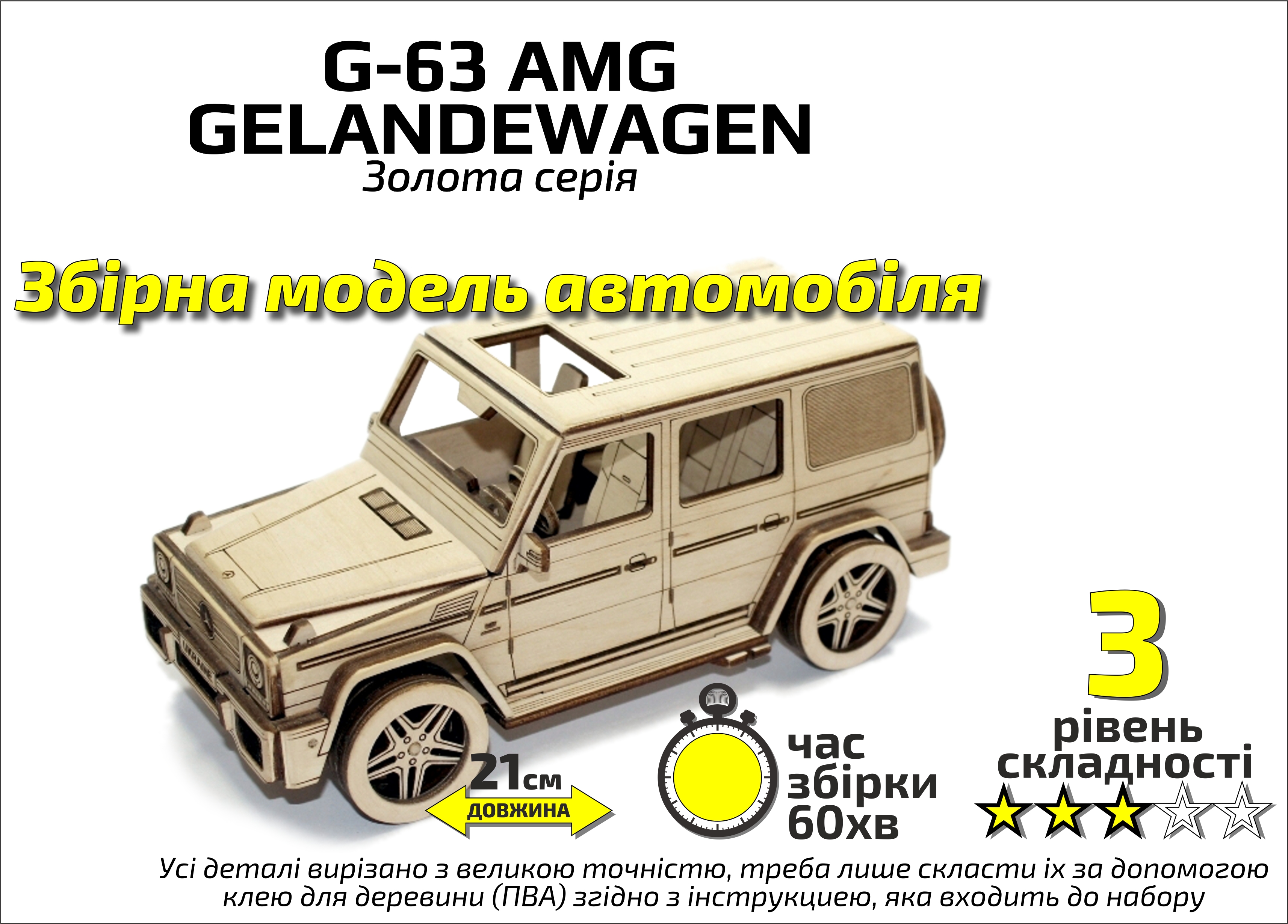 Конструктор дерев'яний 3D Автомобіль "G-63 AMG", Золота серія, кор. 30*17см, Сувенір Декор, Україна