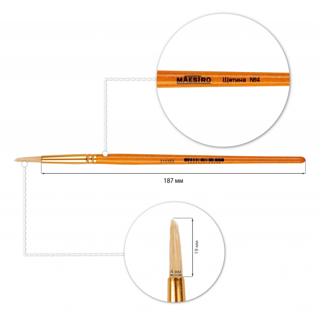 Пензель художній «Maestro» щетина, круглий №4, 20см – це надійний інструмент для художньої творчості, що дозволяє створювати чіткі лінії та виразні мазки.Він призначений для роботи з олійними, акриловими та темперними фарбами. Кругла форма пензля забезпечує точне нанесення фарби та контроль над кожним мазком, а щетина утримує фарбу і дозволяє передавати насиченість кольору.Перевага пензля – у його міцності та довговічності: дерев’яна ручка зручна у використанні, алюмінієва гільза надійно тримає ворс, а щетина зберігає форму навіть при активному застосуванні. Для тривалого служіння рекомендується промивати пензель теплою водою після роботи та зберігати ворсом догори.