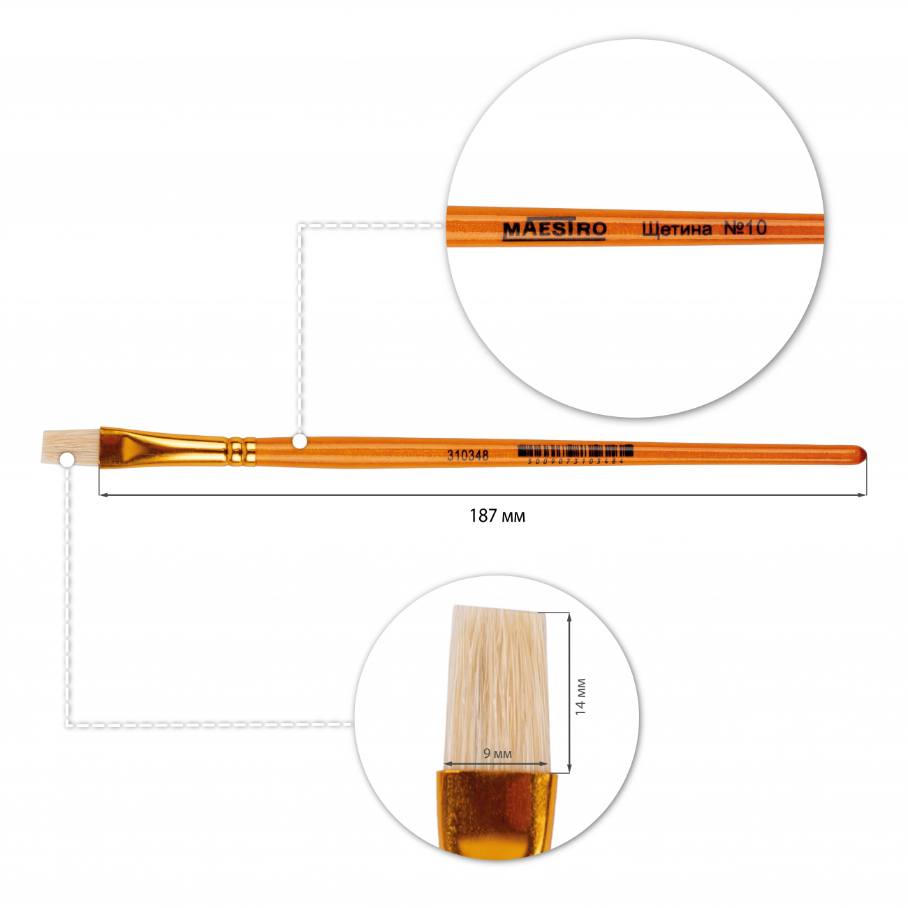 Пензель художній «Maestro» щетина, плоский №10, 19см – це потужний інструмент для художньої творчості, який дозволяє наносити широкі та насичені мазки на полотно.Він призначений для роботи з олійними, акриловими та темперними фарбами. Плоска форма пензля ідеальна для рівномірного заповнення великих площин та створення чітких контурів, а щетина добре утримує фарбу і передає насиченість кольору.Перевага пензля – у його довговічності та зручності: дерев’яна ручка комфортно лежить у руці, алюмінієва гільза надійно фіксує ворс, а щетина зберігає форму навіть при активному використанні. Для тривалого служіння рекомендується промивати пензель теплою водою після роботи та зберігати ворсом догори.