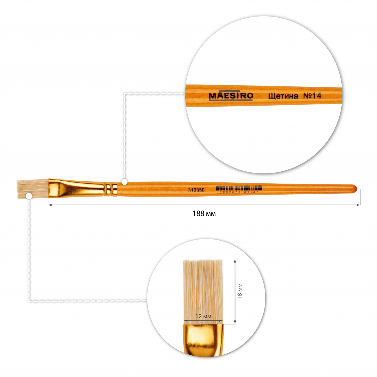 Пензель художній «Maestro» щетина, плоский №14, 21см (ТМ 1 Вересня) – це надійний інструмент для художньої творчості, який дозволяє ефективно покривати великі площини та створювати широкі насичені мазки.Він призначений для роботи з олійними, акриловими та темперними фарбами. Плоска форма пензля забезпечує рівномірне нанесення фарби та чіткі контури, а щетина утримує фарбу й передає насичений колір на полотно.Перевага пензля – у його довговічності та зручності: дерев’яна ручка комфортно лежить у руці, алюмінієва гільза надійно фіксує ворс, а щетина зберігає форму навіть при активному використанні. Для тривалого служіння рекомендується промивати пензель теплою водою після роботи та зберігати ворсом догори.