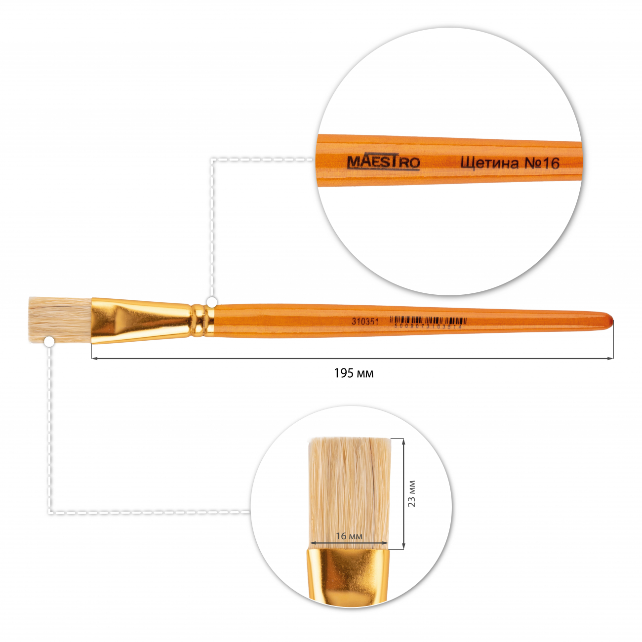 Пензель худож. Maestro щетина, плоский № 16, 21см, ТМ 1 Вересня, Україна