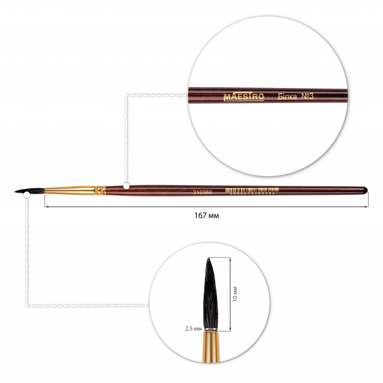 Пензель художній "Maestro" білка, кругла №3, 18см, ТМ 1 Вересня, Україна