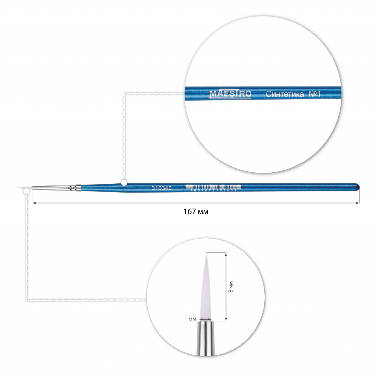 Пензель художній "Maestro" синтетика, круглий №1, 18см, ТМ 1 Вересня, Україна