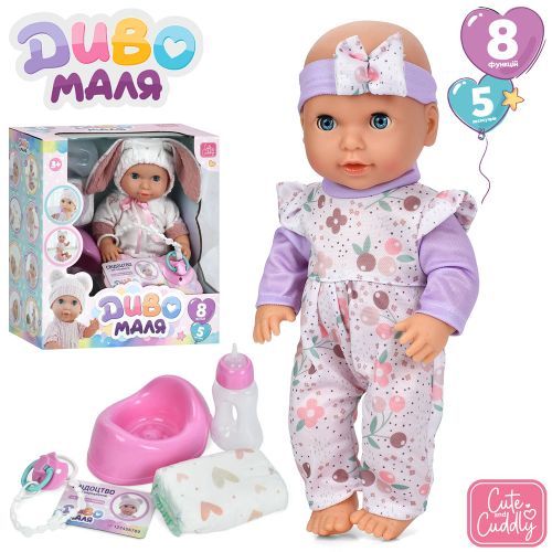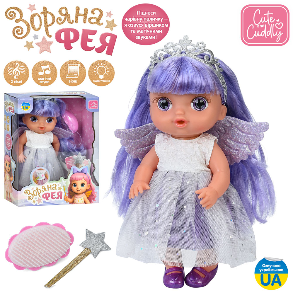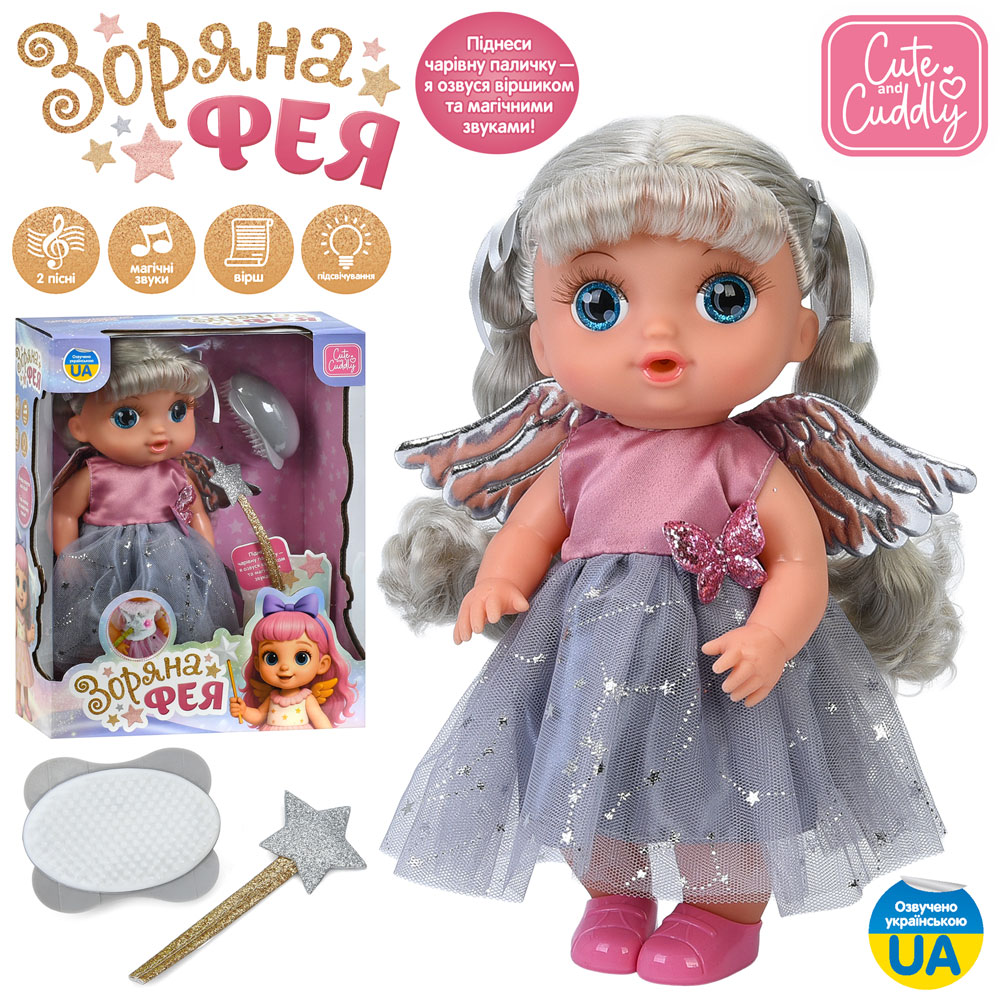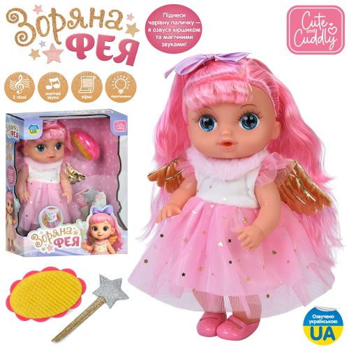 Лялька 28см, п'є-писяє, музика-звук(укр), 2 пісні, світло, реагує на чарівну паличку (вірш), гребінець, на бат(табл), в кор. 23,5*30*10см (18шт)