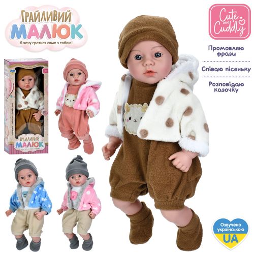 Лялька Грайливий малюк, пупс, 42см, м'яконабивний, музика-звук(укр), казка, пісня, 4 види, на бат(табл)і в, в кор. 19*45*12см (20шт)