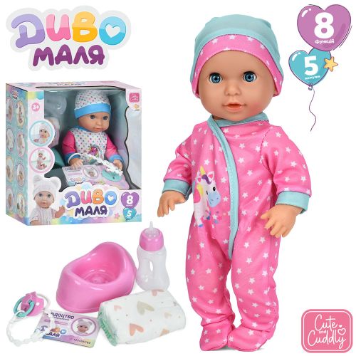 Пупс 30см, п'є-пісяє, горщик, пляшечка, соска, підгузок, в кор. 26,5*29,5*14,5см (16шт)