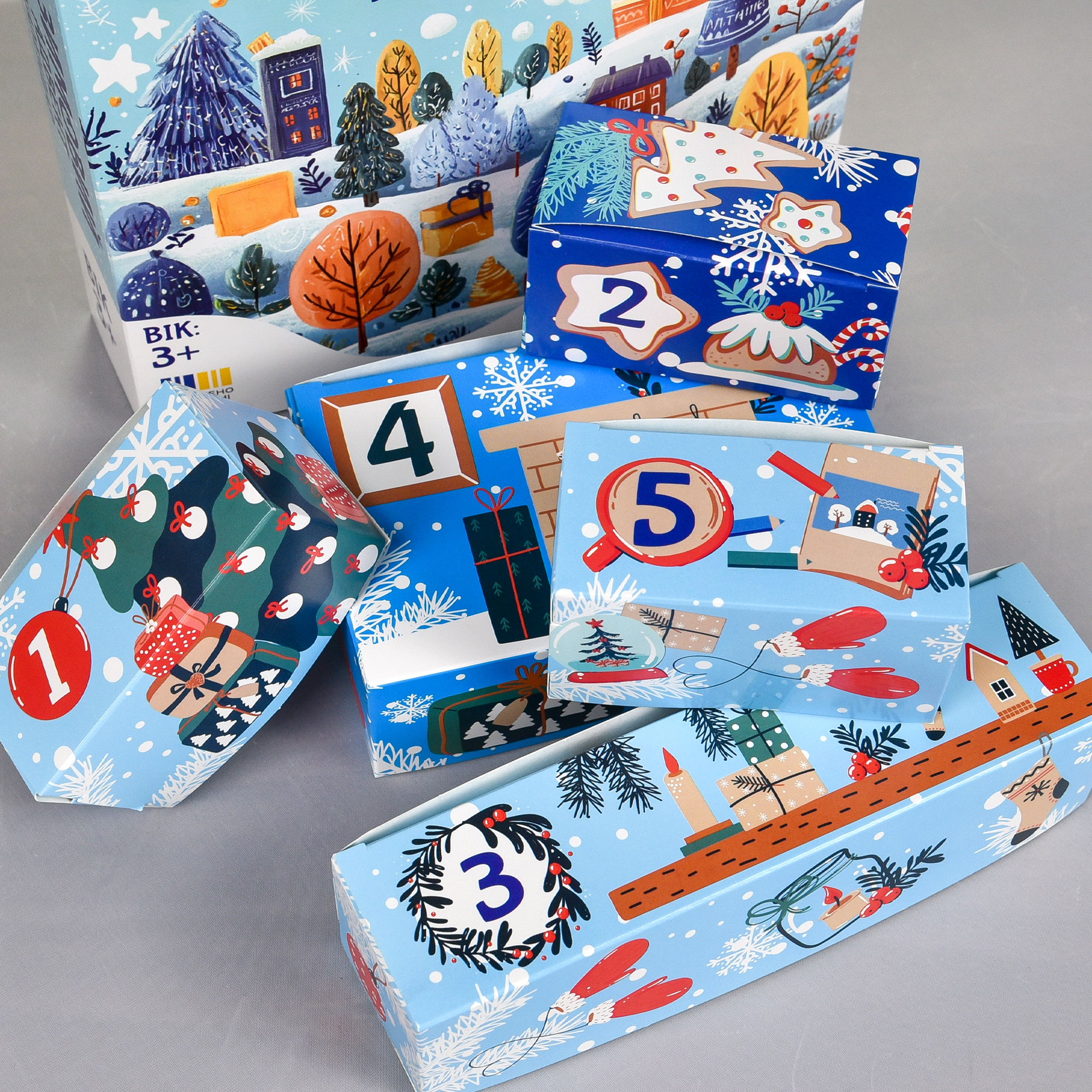 Зимовий Адвент Календар — це святковий набір для творчості, який перетворює кожен день очікування Нового року на маленьке диво. За кожним віконечком ховається новий сюрприз — цікаве завдання або творча активність, що дарує дитині радість відкриття та натхнення.Щодня малюк зможе створювати власні прикраси, малюнки, фігурки та інші креативні вироби, поступово наповнюючи дім новорічним настроєм. Такий календар не лише розважає, а й розвиває фантазію, дрібну моторику, уважність, посидючість та любов до творчості.Це чудовий спосіб зробити передсвяткові дні по-справжньому чарівними для дитини та всієї родини.Матеріали: папір, картон, фарби, фетр, гіпс, пензлик, нитки (залежно від комплекту). Рекомендований вік: від 3 років