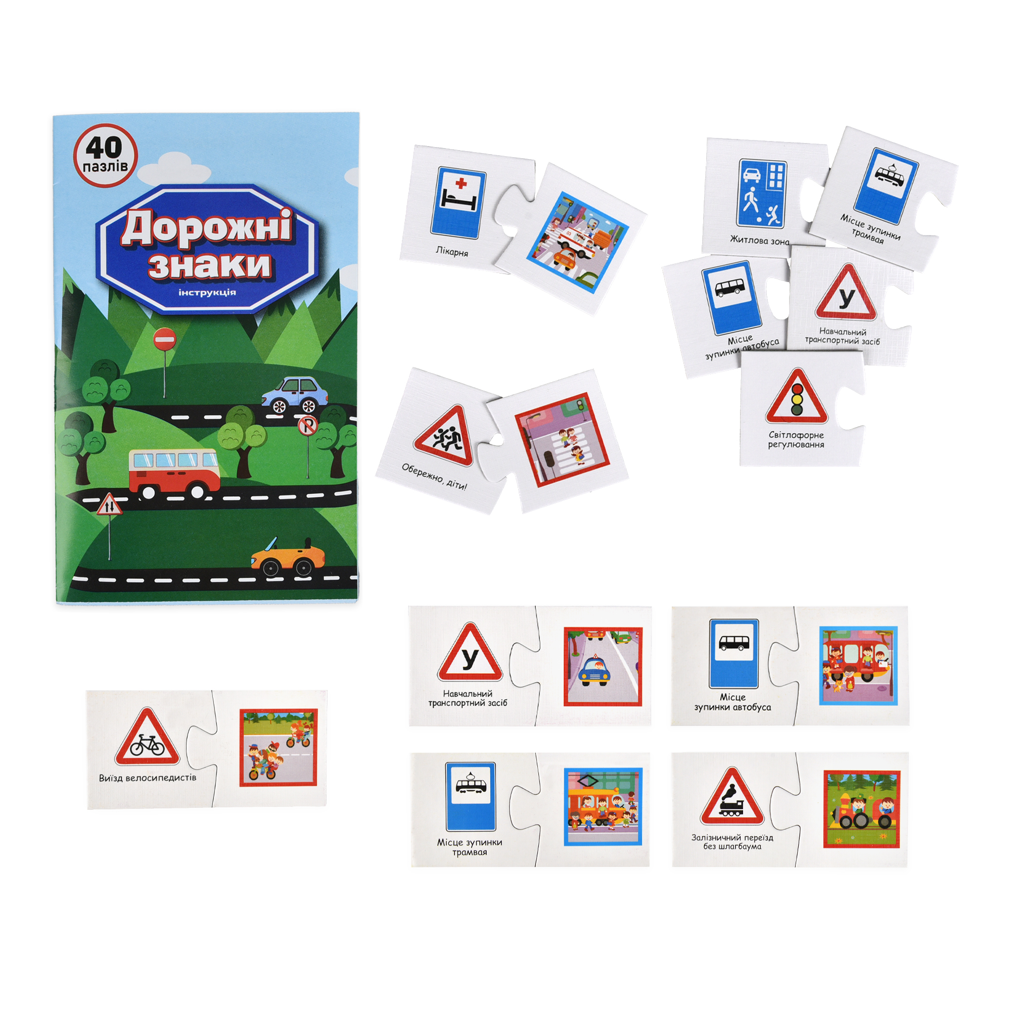 Набір парних пазлів «Дорожні знаки» — це пізнавальна гра для дітей від 3 років, що допомагає легко й цікаво вивчити основні дорожні знаки, сигнали світлофора та правила безпечної поведінки на дорозі. Підбираючи правильні пари, малюк не лише тренує увагу й логічне мислення, а й формує базові знання з безпеки руху.У наборі передбачено три варіанти правил, тому гра підходить як для початківців, так і для дітей, які вже знайомі з темою транспорту. «Дорожні знаки» — це чудовий спосіб навчитися орієнтуватися в місті, граючись і отримуючи задоволення! Вік: 3+. Комплектація: коробка, 40 парних пазлів, інструкція.