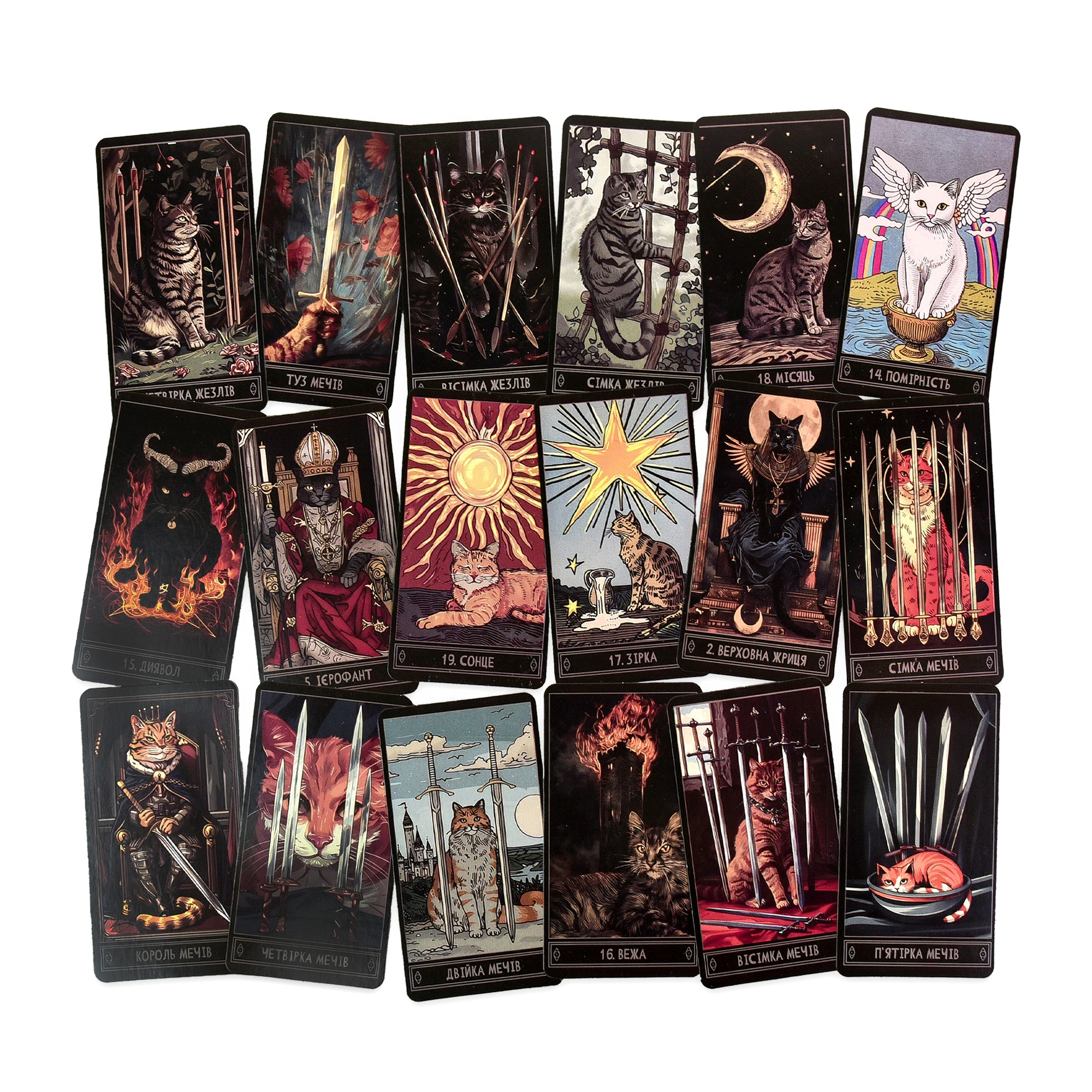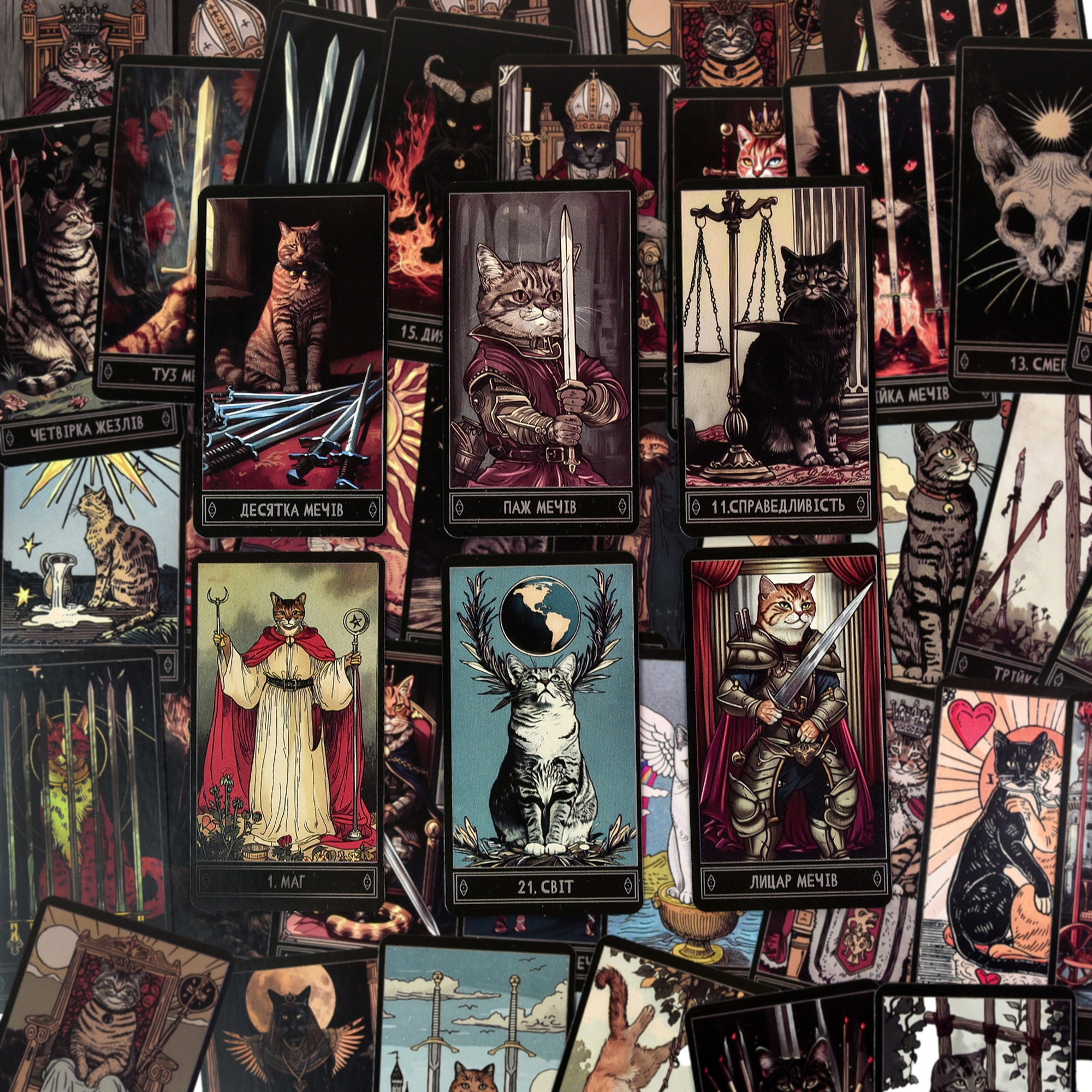 Карти «Таро з котиками» — це особлива колода для тих, хто прагне краще відчути себе, прислухатися до інтуїції та знайти відповіді у повсякденних питаннях. У цій серії образи котів поєднують у собі мудрість, спокій і легку магію. Кожна карта має власне символічне послання, яке допомагає поглянути на ситуацію під іншим кутом або віднайти новий життєвий напрямок.Щоб розпочати роботу з колодою, достатньо перетасувати карти та витягнути одну або кілька. Варто звернути увагу на перші думки, емоції чи асоціації — саме в них часто прихована підказка. Карти можна використовувати для щоденної рефлексії, внутрішньої підтримки, прийняття рішень або як спокійну практику для себе.Ці котики не пророкують буквально — вони лише м’яко натякають, спостерігаючи з тіні та запрошуючи довіритися власним відчуттям, побачити себе чесно, глибоко й без зайвого зовнішнього шуму.Вік: 12+.Комплектація: коробка, гадальні карти, картка з посиланням на інструкцію.