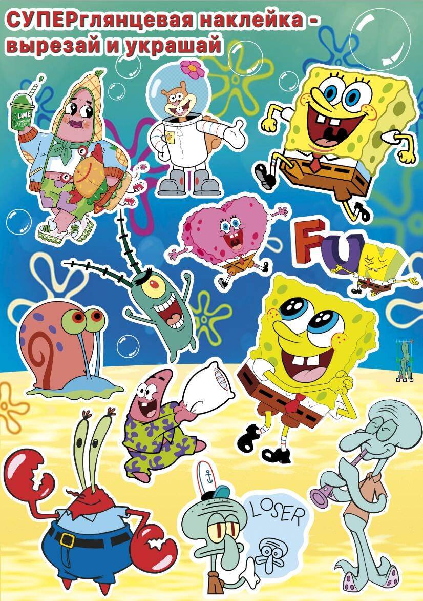 Наклейка А4 Вирізай та прикрашай "Губка Боб", 21*30см, ТМ Oksamut.art, Україна
