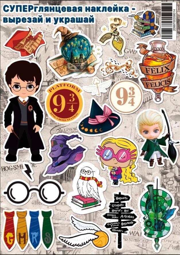 Наклейка А4 Вирізай та прикрашай "Гаррі Поттер", 21*30см, ТМ Oksamut.art, Україна