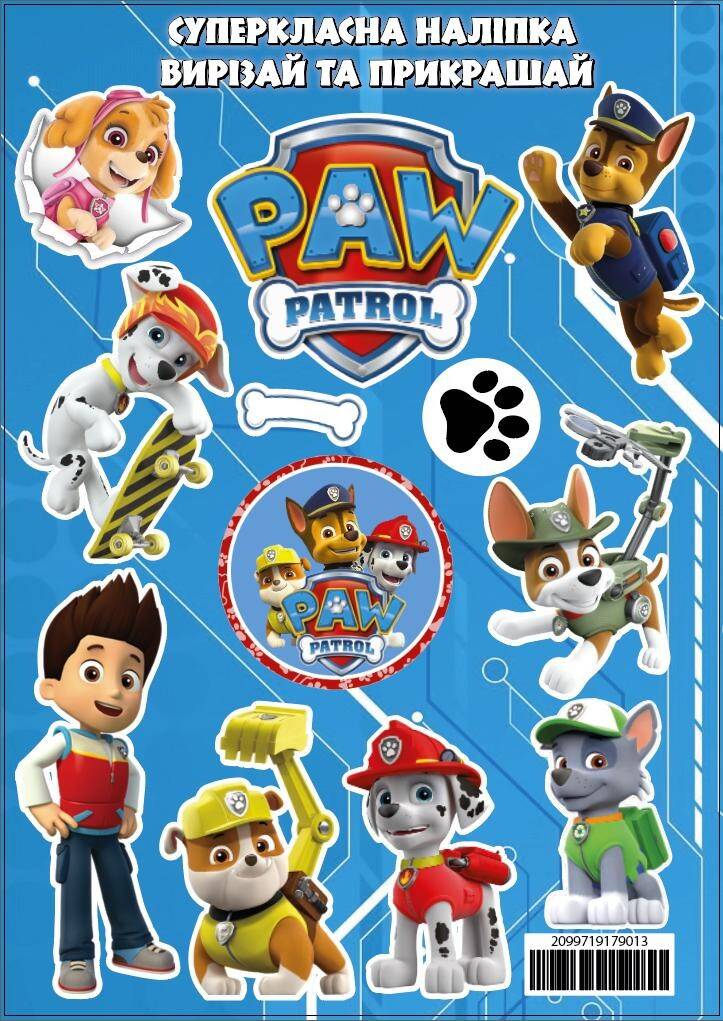 Наклейка А4 Вирізай та прикрашай "Щенячий Патруль!!!", 21*30см, ТМ Oksamut.art, Україна