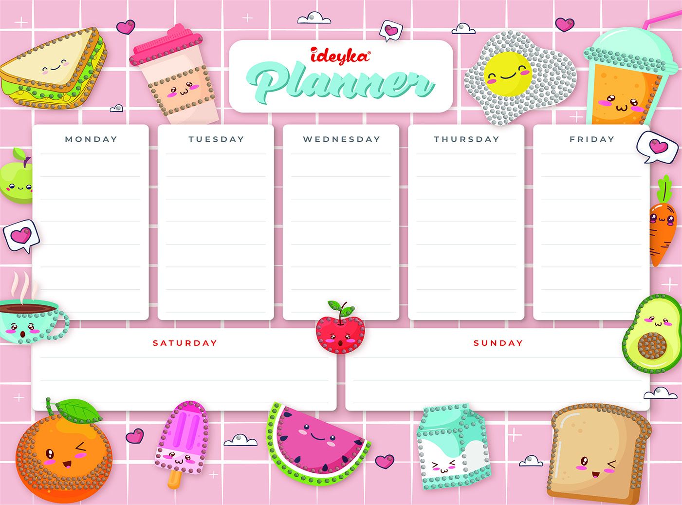 Планер на магнітній основі з алмазною мозаїкою "Продукти" 32х40см, термопакет, ТМ Ідейка, Україна