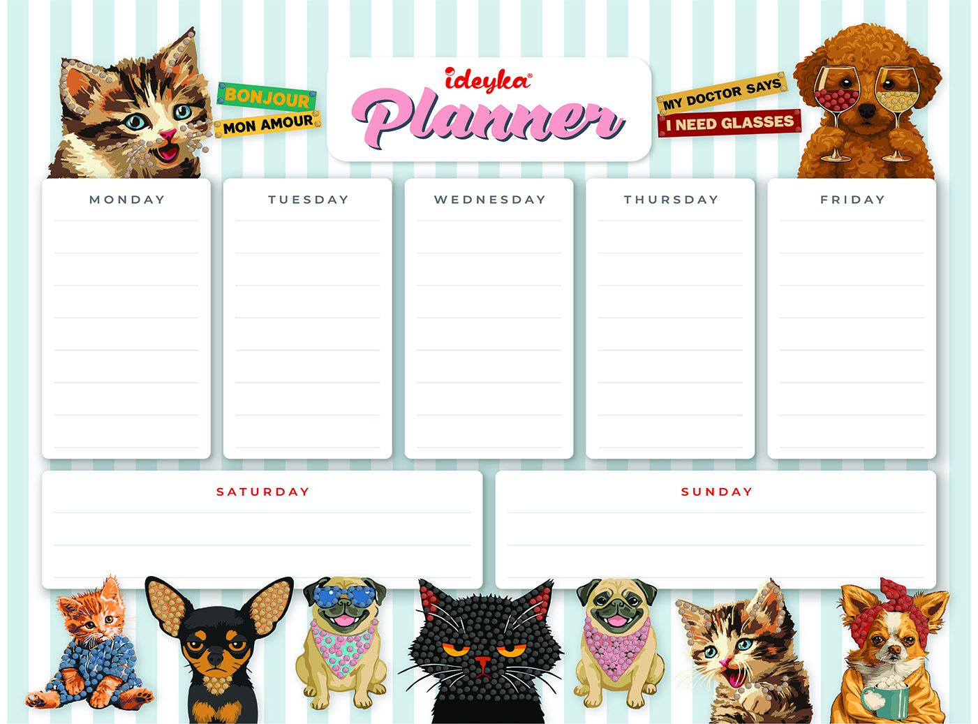 Планер на магнітній основі з алмазною мозаїкою "Домашні улюбленці" 32х40см, термопакет, ТМ Ідейка, Україна
