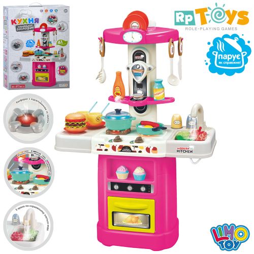 Кухня 47*21*68см LIMO TOY, плита, мийка-ллється вода(механіч), пара/дим, посуд, продукти, 52дет, на батар., в кор. 49*35,5*13см (12шт)