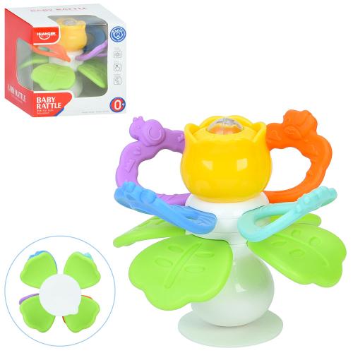 Брязкальце квітка, 11*11*11см, прорізувач, тріскачка, на присосці, текстурні деталі, сенсорна гра, в кор. 11,5*11,5*11,5см (72шт)