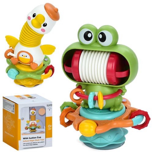 Брязкальце 21см, на присосці, текстурні деталі, присоска, пискавка, музика, звук(англ), звуки тварин, рухливі деталі, 2 види (жаба, гусак), на батар., в кор. 13,5*18*12см (36шт)