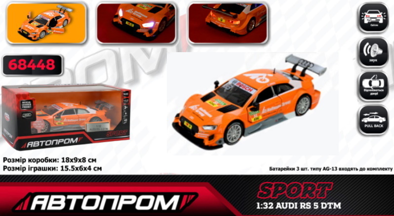 Машина метал. "АВТОПРОМ", 1:32 Audi RS 5 DTM, світло, звук, кор. 18*9*8см (48шт/2)